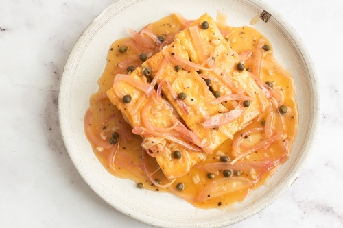 Return the crispy tofu to the skillet and spoon the sauce over the top. Simmer until warmed through, 1-2 minutes, then serve.